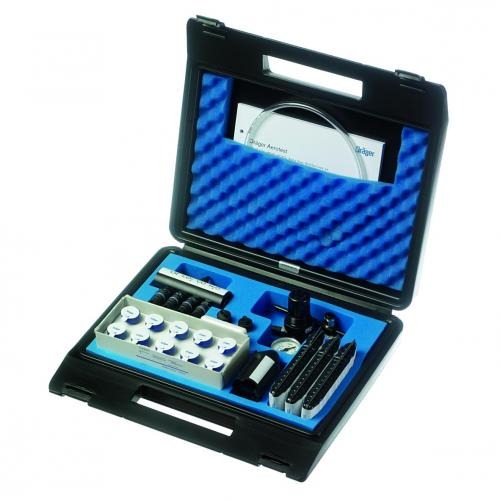 Dräger Aerotest Alpha składa się z 1 reduktora ciśnienia, urządzenia pomiarowego na 4 rurki (pojemniki), łapacza oleju, złączek, stopera, urządzenia do otwierania rurek Dräger TO 7000, zestawu 5 spiekanych filtrów, instrukcji obsługi i czarnej walizki do przenoszenia zestawu.