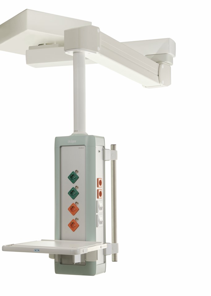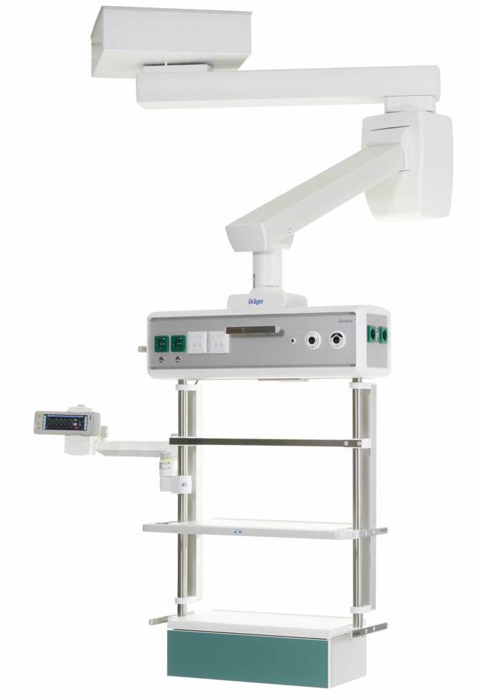 Odciążenie personelu i poprawa samopoczucia pacjentów to istotne założenia w procesie projektowania Dräger Ambia®. Sufitowa jednostka zasilająca oferuje więcej miejsca na zamocowanie aparatury medycznej dzięki innowacyjnej koncepcji montażu, zgodnie z którą zmiany na stanowisku pracy mogą być w prosty sposób dokonywane na miejscu, co pozwala na szybkie i łatwe dostosowanie jednostki zasilającej do indywidualnych wymagań. Zaokrąglone krawędzie ułatwiają proces czyszczenia, a tym samym zapewniają lepszą ochronę przed zakażeniami na oddziale intensywnej terapii. Liczne warianty kolorystyczne i oświetleniowe tworzą przyjazną atmosferę w salach, gdzie przebywają pacjenci.
