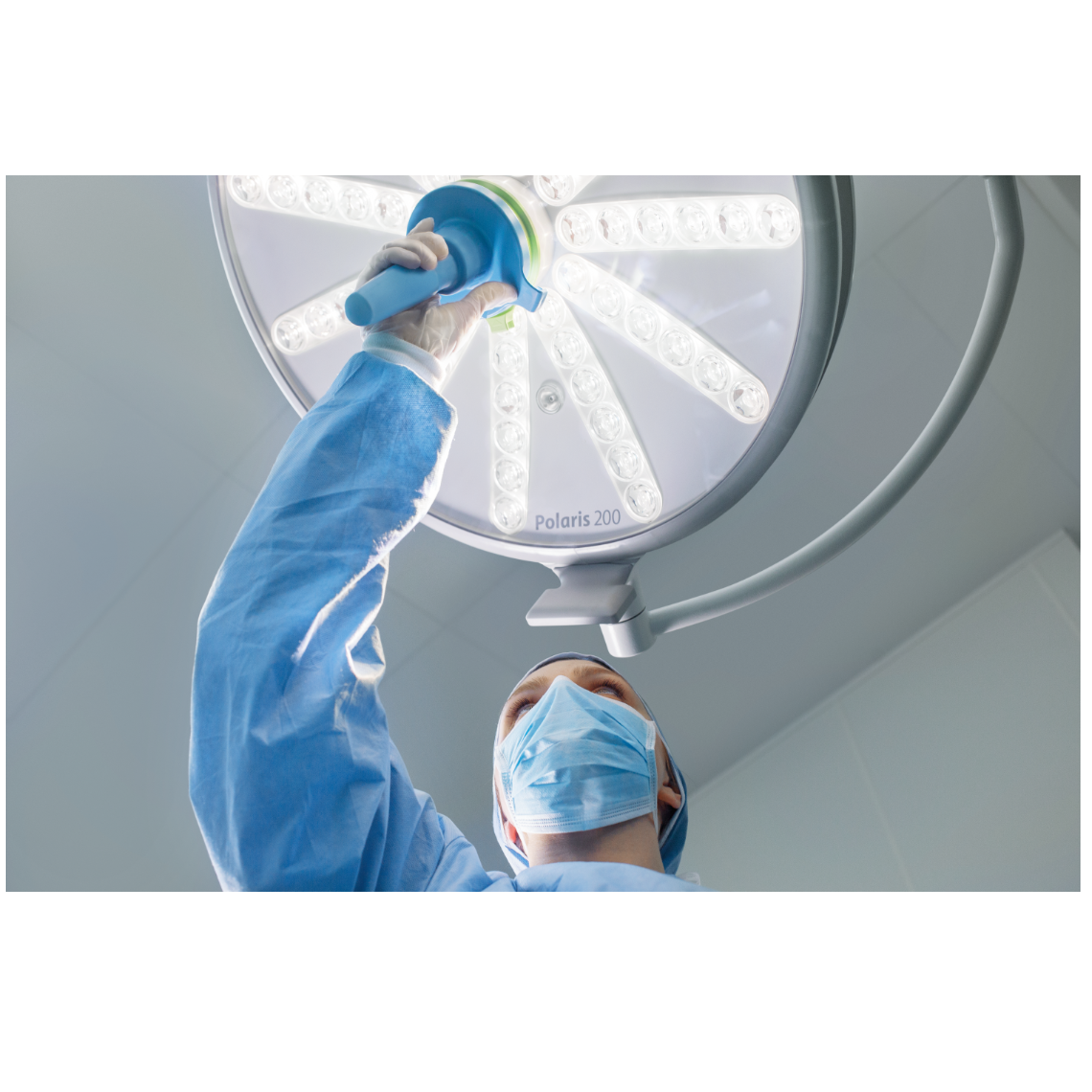 Zupełnie nowa, kompaktowa lampa Polaris® 200 wyposażona jest w 66 diod LED o intensywności oświetlenia od 40 000 do 160 000 luksów. Specjalny tryb oświetlenia otoczenia pojedynczą diodą LED pomaga przy zabiegach minimalnie inwazyjnych. Elegancka, a przy tym bardzo solidna kopuła lampy waży zaledwie 13 kg, dzięki czemu jej odpowiednie ustawienie jest niezwykle wygodne i proste. Brak ruchomych części w obrębie kopuły lampy oznacza, że praktycznie nie są wymagane żadne czynności konserwacyjne tego systemu. Współczynniki oddawania barw w lampach Polaris® wynoszą Ra = 95 oraz R9 = 93, dzięki czemu zapewniają one bogaty kontrast i naturalne kolory, bez kompromisów w odcieniach czerwieni. System Polaris® 200 może być wyposażony w diody LED o ciepłym, naturalnym lub zimnym białym świetle (4400 K, 5000 K lub 5600 K). Każda dioda LED jest wyposażona we własny system reflektorów soczewkowych. Jednorodna wiązka światła z obu lamp zapewnia doskonałą bezcieniowość oraz bogaty w kontury i naturalne kolory obraz w całym obszarze pola operacyjnego.