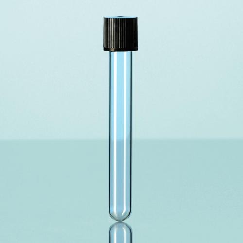Probówki hodowlane, jednorazowe, szkło sodowo wapniowe, z gwintem DIN i zakrywką PP1.