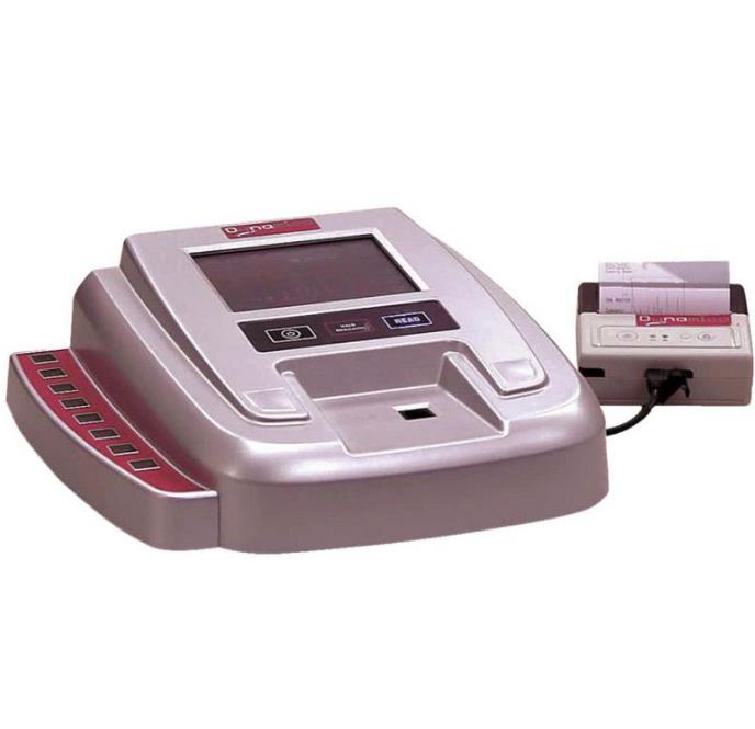 Dotykowy ekran LCD o wymiarach 90 mm x 120 mm z intuicyjnym oprogramowaniem dla szybkiego wyboru programu wg typu próbki. Łatwa w obsłudze nawigacja oraz wirtualna klawiatura typu QWERTY zapewniają szybkie wprowadzanie danych do komputera oraz analizę. Dane wyświetlane są numerycznie, w formie graficznej z możliwością bezpośredniego drukowania, bądź przechowywane na karcie SD.