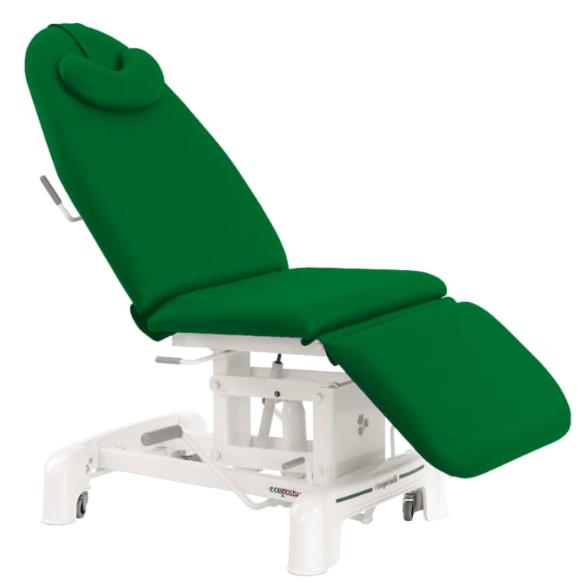 Fotel zabiegowy z hydrauliczną regulacją wysokości za pomocą dźwigni nożnej. Regulacja nie wymaga zasilania i jest w pełni manualna. Brak konieczności zasilania sprawia, że fotel może być wykorzystywany w różnych miejscach. Mobilność konstrukcji zapewnia wysuwany system jezdny. Oprócz zmiany wysokości możliwa jest dowolna konfiguracja pozycji poprzez płynną regulację oparcia, siedziska i podnóżka.