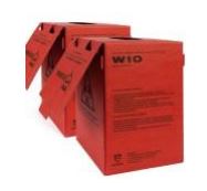 Zastosowanie: służy do gromadzenia odpadów medycznych o ostrych końcach i krawędziach, strzykawek, rękawic, wenflonów, szpatułek, gazików, wzierników ginekologicznych, pampersów oraz innych drobnych odpadów medycznych. Oznakowany OSTRZEGAWCZO!