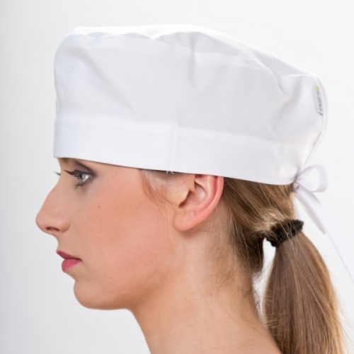 Zawiązywany troczkiem czepek medyczny, Uniwersalny - zarówno dla kobiet, jak i mężczyzn.