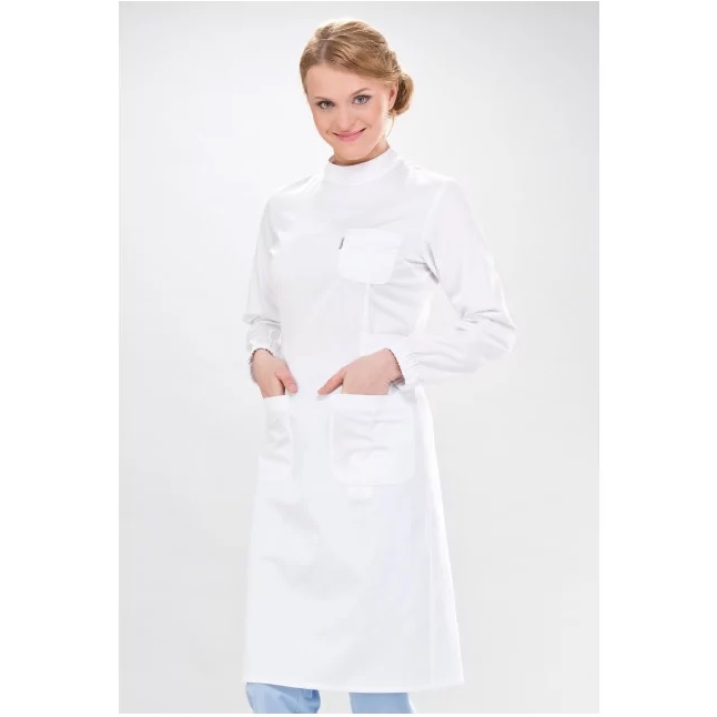 - na przodach naszyte dwie duże pojemne kieszenie i jedna mała, idealna na długopis lub na przypięcie identyfikatora.