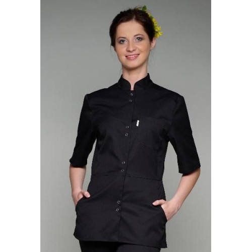 Bluza zapinana na napy, dopasowana do figury, z cięciem na wysokości tali, trzy kieszenie, przy dekolcie stójka. Długość całkowita 72 cm. W bluzach damskich uwzględniono luzy konfekcyjne ok. 4 - 6 cm. W załączonej tabeli podano wymiary osoby, a nie odzieży.