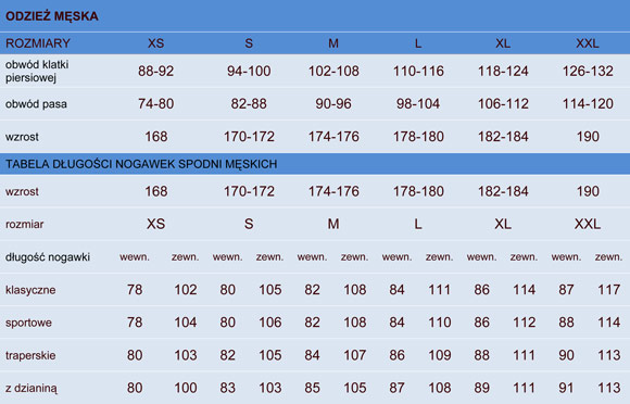 Tabela wymiarów dostępna w załączniku.
