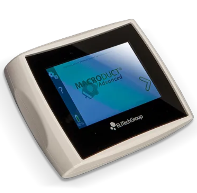 Induktor potu Macroduct Advanced posiada przyjazny, prosty interfejs użytkownika z ekranem dotykowym. Zawiera wizualny przewodnik krok po kroku dotyczący wszystkich aspektów indukcji i gromadzenia potu, co dodatkowo zwiększa standaryzację testu potu. Zapewnia to przestrzeganie właściwych procedur. Zintegrowany timer w wygodny sposób monitoruje 30-minutowy czas zbierania danych, a eksportowane dane testowe pomagają zweryfikować prawidłowość wykonania testów.