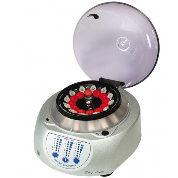 Małe i bardzo funkcjonale połączenie wirówki ze wstrząsarką. Doskonałe dla małych laboratoriów. W funkcji wirówki urządzenie przystosowane jest do pracy z wirnikiem kątowym na Eppendorfa. Jako wstrząsarka Vortex posiada kilka programów intensywności wstrząsania.