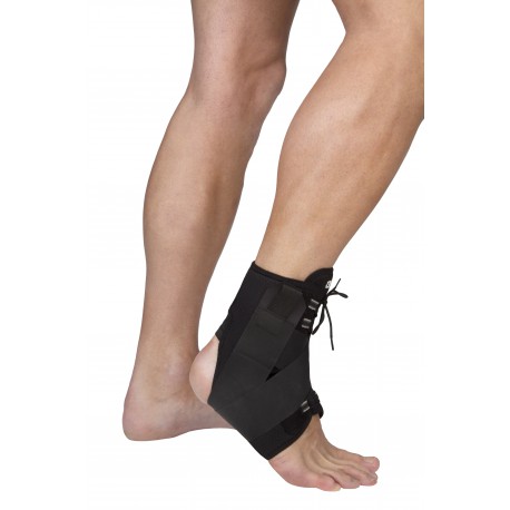 Orteza wykonana z miękkiego oddychającego materiału, sznurowana, zawiera dwie boczne wkładki wzmacniające staw. Stabilizuje staw skokowy ograniczając ruchy boczne.Dodatkowe nieelastyczne taśmy dociągowe wzmacniają stabilizację.