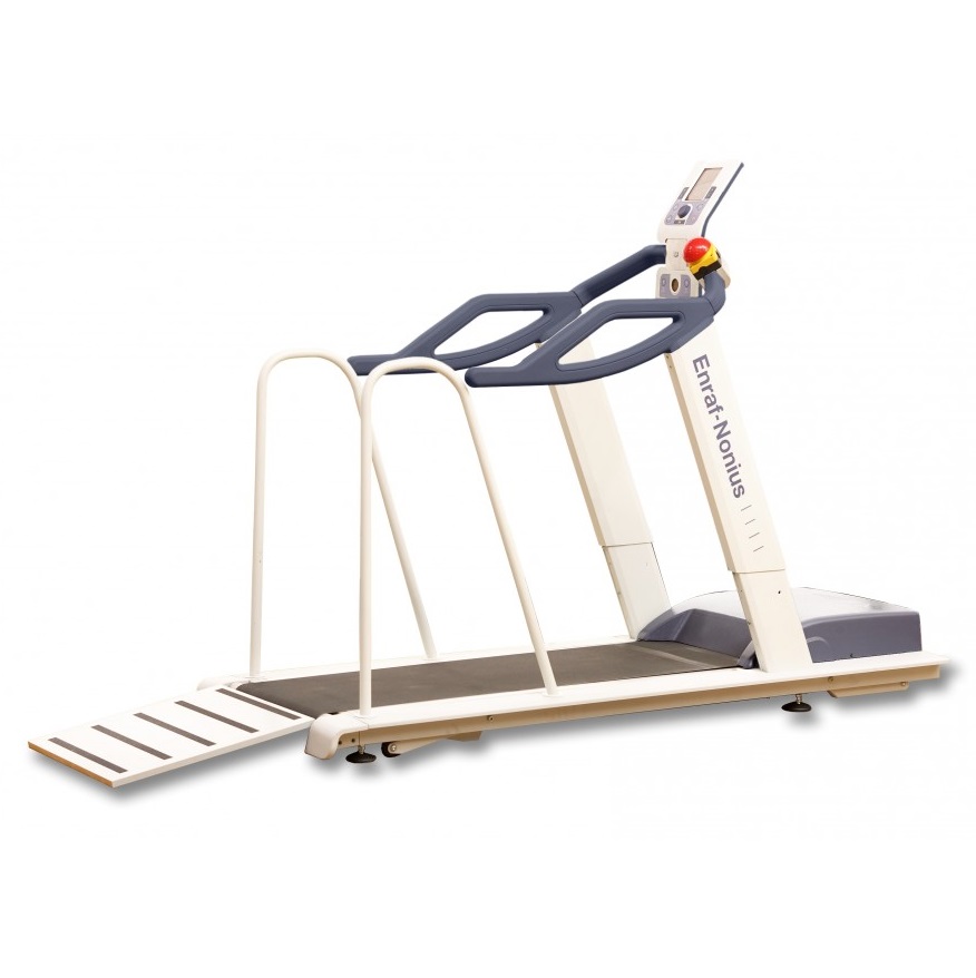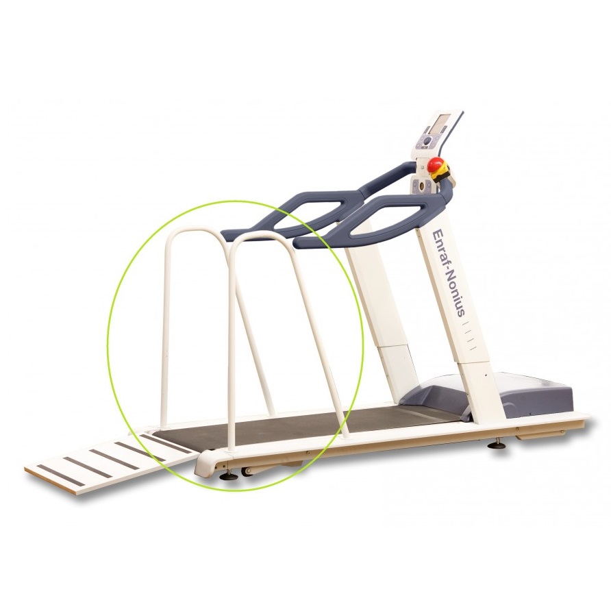 Dzięki elektrycznie regulowanym, bocznym poręczom można szybko dostosować prawidłową wysokość. Otwarta konstrukcja powoduje, że obserwacja wzorca chodu jest bardzo łatwa.