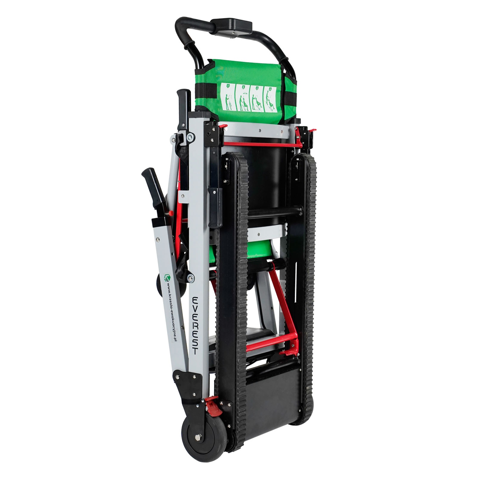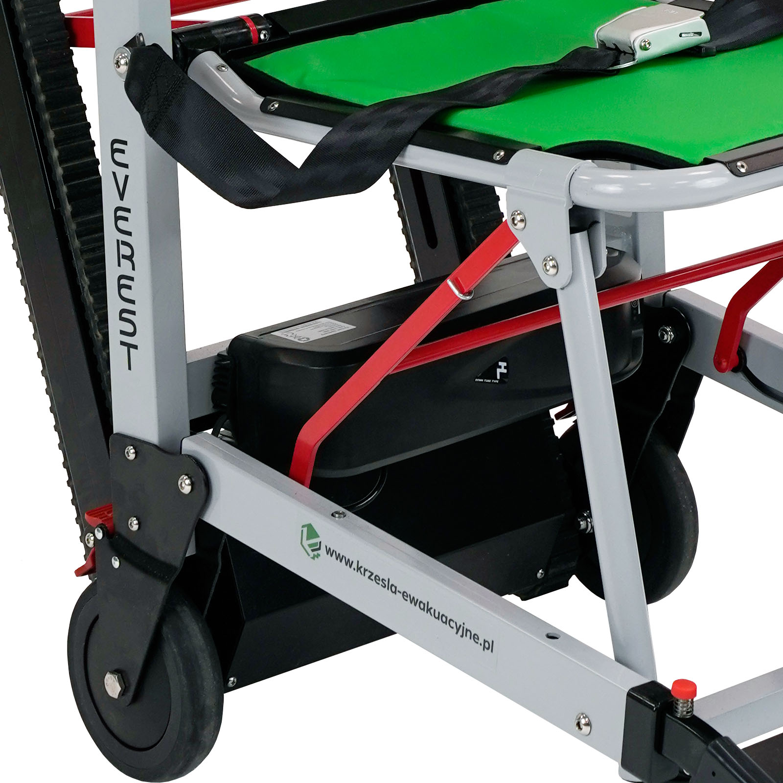 Krzesło ewakuacyjne EVEREST jest krzesłem z napedem elektrycznym. Pozwala na ewakuacje osoby w dół i w góre po schodach w sytuacjach awaryjnych, a takze po poziomym podłozu.