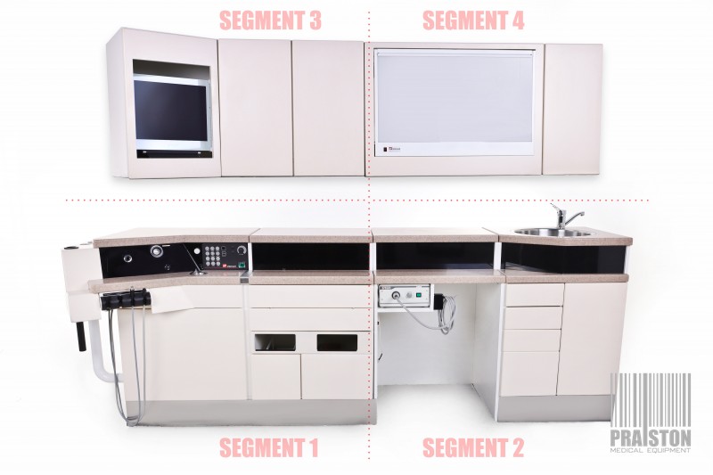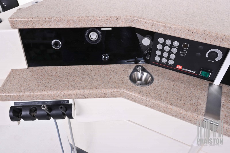 - W unicie ENTERMED ERGOMED 600 zastosowano najwyższej jakości materiały, między innymi drewnianą obudowę segmentu oraz blat wykonany z luksusowego marmuru MARLAN. Dzięki temu urządzenie posiada elegancką stylistykę i jest bardzo wydajne. Budowa unitu jest modułowa. Składa się z dwóch segmentów stojących oraz dwóch segmentów wiszących szafek ściennych.