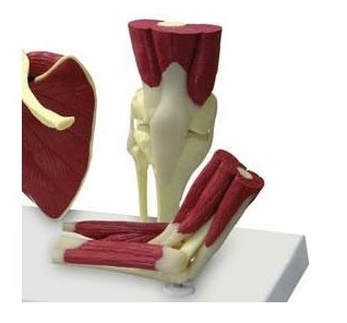 Zestaw modeli miniatur stawów z mięśniami Erler Zimmer 4660 przedstawia następujące stawy: kolanowy, biodrowy, ramienny i łokciowy z kośćmi, a także więzadłami i mięśniami.