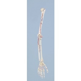 Model przedstawia układ kostny ramienia bez kości łopatkowej. Można zaprezentować ruch obracania i nawracania przedramienia oraz ruchy stawu nadgarstkowego. Wszystkie kości są ruchome i połączone ze sobą. Początki i przyczepy mięśni są oznaczone kolorami czerwonym i niebieskim.