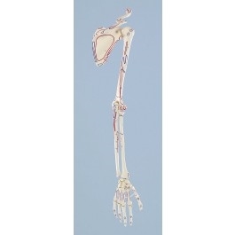Model przedstawia układ kostny ramienia wraz z kością łopatkową. Można zaprezentować ruch obracania i nawracania przedramienia oraz ruchy stawu nadgarstkowego. Wszystkie kości są ruchome i połączone ze sobą. Początki i przyczepy mięśni są oznaczone kolorami czerwonym i niebieskim.