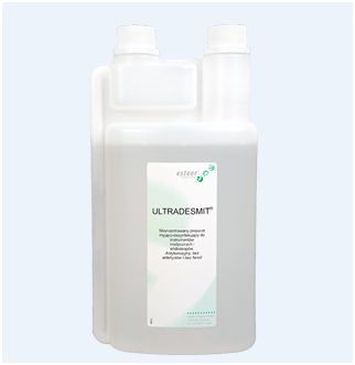 Jednoczesne mycie i dezynfekcja narzędzi chirurgicznych, sprzętu laboratoryjnego, anestezjologicznego, cewników oraz endoskopów. ULTRADESMIT jest preparatem o właściwościach antykorozyjnych i wysokiej tolerancji materiałowej. Ze wzgledu na nowoczesny skład i szybkie działanie zalecany jest do dezynfekcji termolabilnych przyrządów medycznych, takich jak: gastroskopy, kolonoskopy, bronchoskopy oraz do dezynfekcji przedmiotów ze szkła, porcelany, metalu, gumy i materiałów syntetycznych. Brak aldehydów eliminuje odbarwianie dezynfekowanych powierzchni. Szczególnie nadaje się do mycia i dezynfekcji specjalistycznych instrumentów stomatologicznych, m. in. instrumentów do leczenia kanałowego. Odpowiedni do mycia w myjkach ultradźwiękowych. ULTRADESMIT przeszedł pozytywne testy na instrumentach STORZ oraz endoskopach OLYMPUS. Zalecany również w gabinetach fryzjerskich i kosmetycznych. Aktywność roztworu roboczego 14 dni. Pojemność: 1l, 5l