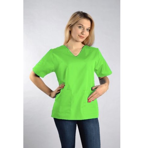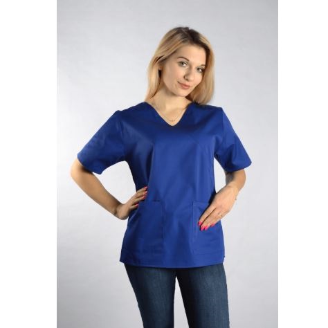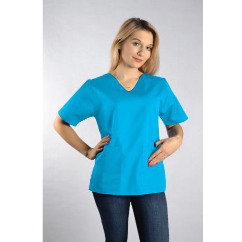 Bluza medyczna Diana damska, przeznaczona jest dla personelu medycznego. Bluza ma podnosić komfort pracy i zapewniać profesjonalny wizerunek. Została wykonana z materiału 50% poliester i 50% bawełna. Połączenie tych dwóch materiałów sprawia, że bluza medyczna nie podrażnia skóry i jest bardzo wytrzymała. Jest też delikatna dla skóry i przyjemna w dotyku. Sprawdza się nawet podczas intensywnej pracy. Dzięki bocznym rozcięciom bluza dopasowuje się do ruchów ciała. Dwie przednie kieszenie pozwalają schować wszystkie niezbędne przybory. Bluzka Diana jest taliowana, dzięki czemu dobrze leży na każdej sylwetce. Zapewnia wygodę i pełną swobodę ruchów. Dobrze znosi wielokrotne pranie, nie traci koloru i nie ulega zniekształceniom. Bluza ma dekolt w kształcie litery V, co nadaje jej eleganckiego wyglądu.