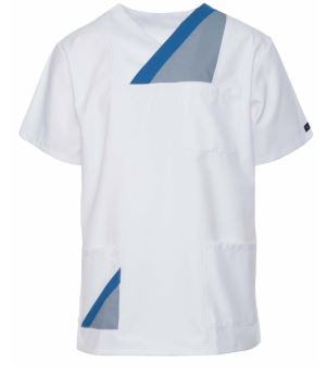 Bluzka medyczna Hanover to bluza męska wkładana przez głowę. Wykonana jest z 50% bawełna i 50% poliester. Cechuje ją wysoka jakość i sługa funkcjonalność. Posiada dwie praktyczne kieszenie po bokach oraz jedną na wysokości piersi, dzięki czemu jest miejsce na potrzebne akcesoria niezbędne do pracy. Delikatny biały kolor wnosi świeżość w codziennym wyglądzie. Krój bluzy jest bardzo prosty, a dzięki występującym wycięciom po bokach, bluza nie opina oraz daje pełną swobodę podczas wykonywania ruchów. Posiada dwukolorową wstawkę biało - szarą, co nadaje jej oryginalnego wyglądu. Idealnie nadaje się do długiej pracy, która wymaga wygodnego stroju. Bluza sprawdza się w 100%. Dostępna jest w wielu rozmiarach, a więc każdy znajdzie odpowiedni model dla swojej sylwetki. Stworzona dla lekarzy, kosmetologów czy pracowników SPA.