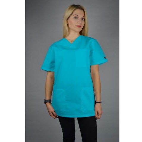 Bluza medyczna to bluza przeznaczona dla kobiet, posiadająca uniwersalny kolor oraz krój. Idealna jest dla kobiet ceniących sobie komfortowy i modny strój w pracy. Posiada nowoczesny design, który idzie w parze z funkcjonalnością. Wyposażona jest w dwie kieszenie, do których można schować niezbędne drobiazgi. Model został wykonany z wysokiej jakości bawełny oraz poliestru, co oznacza, że bluza jest bardzo funkcjonalna, mniej podatna na zabrudzenia, zniszczenia i blaknięcia. Posłuży ona na dłuższy okres czasu a więc nie trzeba się martwić o kupno nowej. Również bardzo dobrze się pierze, nie niszcząc przy tym. Jest doskonale skrojona, posiada dekolt w kształcie litery "V". Dużym plusem jest wygoda, w noszeniu jest ona bardzo luksusowa, co znaczy, że można w niej łatwo wykonywać wszystkie czynności. Bluza dostępna jest w wielu rozmiarach, dla każdego znajdzie się odpowiedni model bez żadnych problemów. Dla kogo jest przede wszystkim polecana? Dla lekarzy, personelu medycznego, kosmetologów.