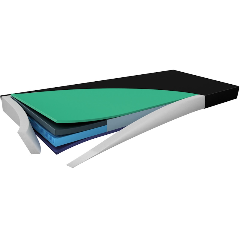 Wysokiej jakości materac stosowany w profilaktyce i terapii odleżyn do 2 stopnia (EPUAP) oraz leczeniu bólu związanego z ich występowaniem. Czterowarstwowa konstrukcja wykonana z pianek o różnej gęstości i grubości z podłużnymi i poprzecznymi nacięciami dostosowuję się do kształtu ciała pacjenta, redukując ucisk na tkanki i utrzymując skórę pacjenta w odpowiedniej kondycji. Maksymalne parametry użytkowe materaca zapewnia innowacyjna pianka EvoPore HRC (High Resilience Climate). Cztery dostępne wymiary materaca (1900x760 mm, 1960x840 mm, 2000x850 mm oraz 2060x865 mm) oraz możliwość wyboru jego wysokości (12/14/15/16 cm) pozwolą zaspokoić wymagania każdej placówki medycznej.