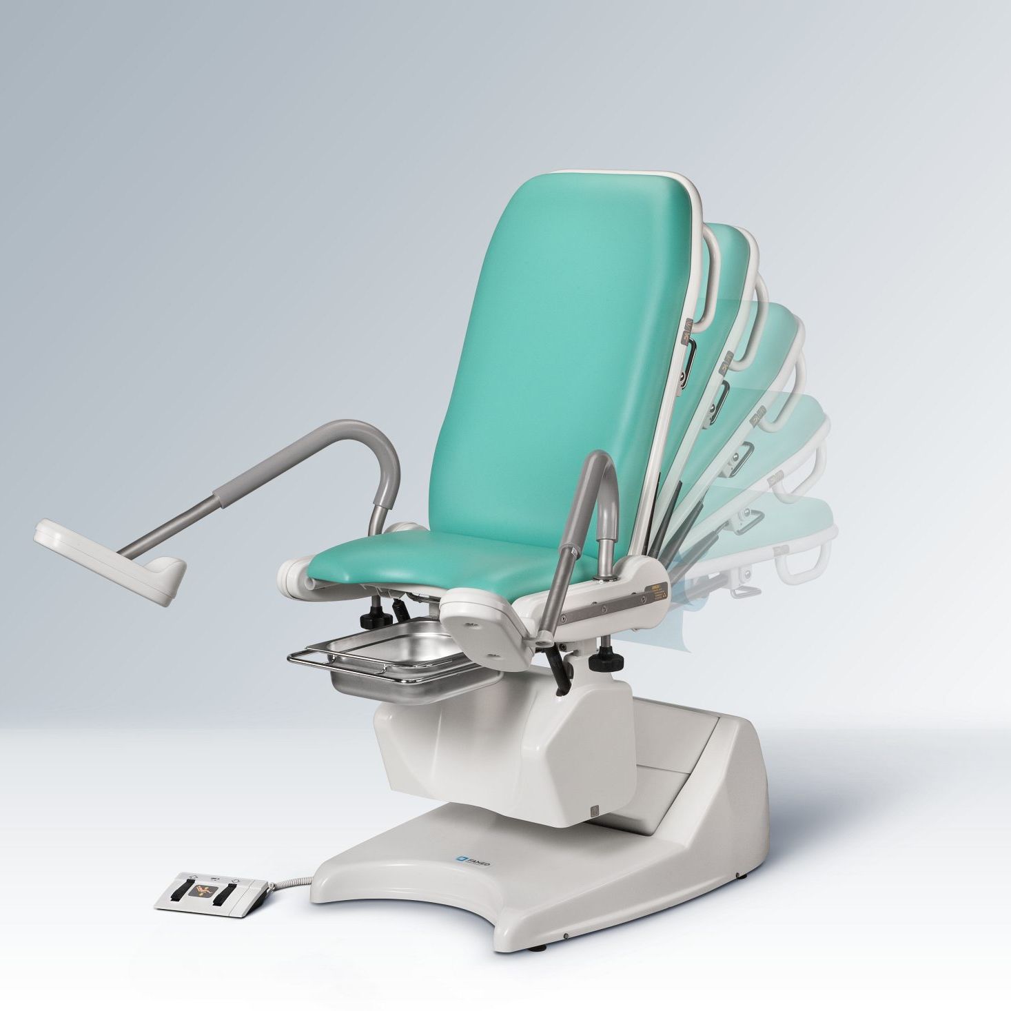 Za pomocą sprężyn gazowych możliwa jest zmiana pozycji fotela wedle potrzeb, a wysokość fotela regulowana jest elektrycznie. Dzięki sprężynom gazowym z blokadą można płynnie regulować nachylenie oparcia pleców oraz przechyły Trendelenburga i anty-Trendelenburga przy pomocy których regulujemy również ustawienie siedziska.
