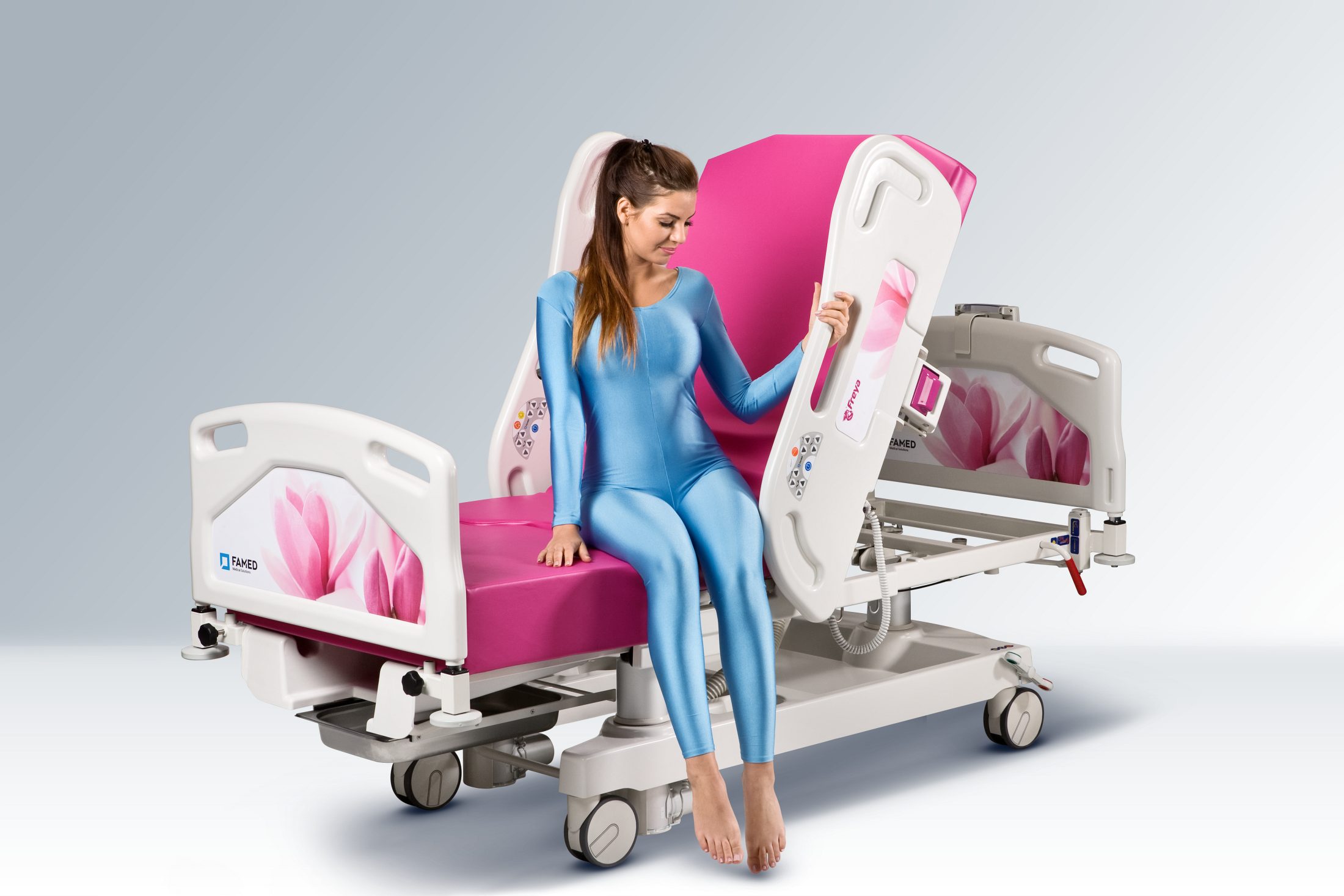 Łóżko porodowe Famed Freya może szybko przybrać swoją formę, przemiana z łóżka szpitalnego to kwestia kilkunastu sekund. Jest szerokie i wygodne, a w trakcie porodu pozwoli w wygodny sposób przyjąć wiele pozycji, m.in. pozycję kuczną z uchwytem, półsiedzącą, różne warianty pozycji siedzącej, pozycji tylnej, horyzontalnej, bocznej czy stojącej.