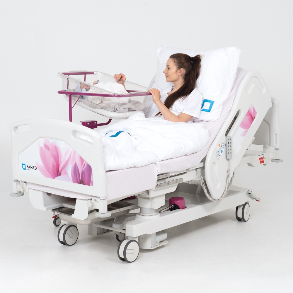 Wykorzystanie w jednej sali zarówno łóżka porodowego Famed FREYA, jak i łóżeczka dla noworodków Famed OVO 2, pozwala stworzyć matce i dziecku wyjątkowe warunki po porodzie. Matka może nie tylko zmieniać ustawienie pozycji łóżka, ale także w bezpieczny sposób przekładać do siebie dziecko, lub odkładać je z powrotem do Famed OVO 2.