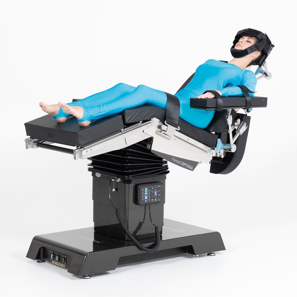 - Przezierny dla promieni RTG blat z włókna węglowego lub HPL (do wyboru).