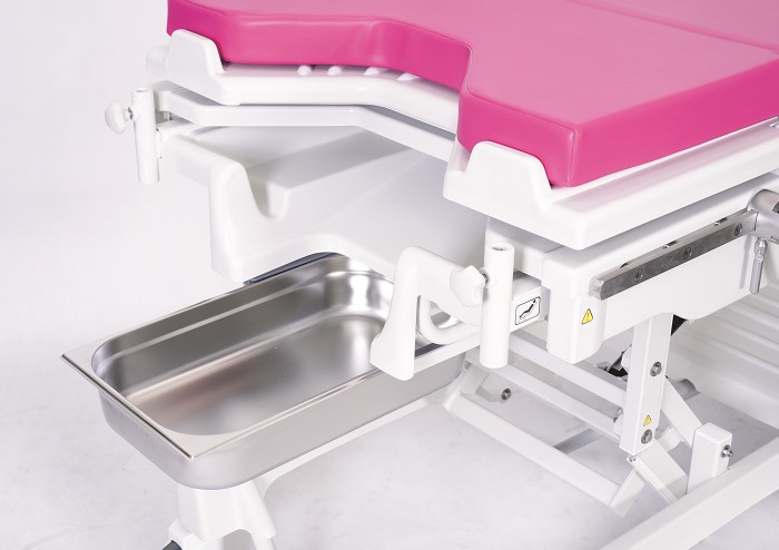 Bogate wyposażenie pozwala przyjąć wiele pozycji porodowych, a także umożliwia przeprowadzenie specjalistycznych badań okołoporodowych - rektoskopowych, ginekologicznych czy palpacyjnych. W podstawowym wyposażeniu znajdziemy uchwyty dla rąk, oparcia stóp, podkolanniki oraz misę ze stali nierdzewnej. Wyposażenie można zamontować na uniwersalnych szynach na akcesoria. Łóżko posiada komplet materacy zabezpieczony przed wnikaniem do środka cieczy.