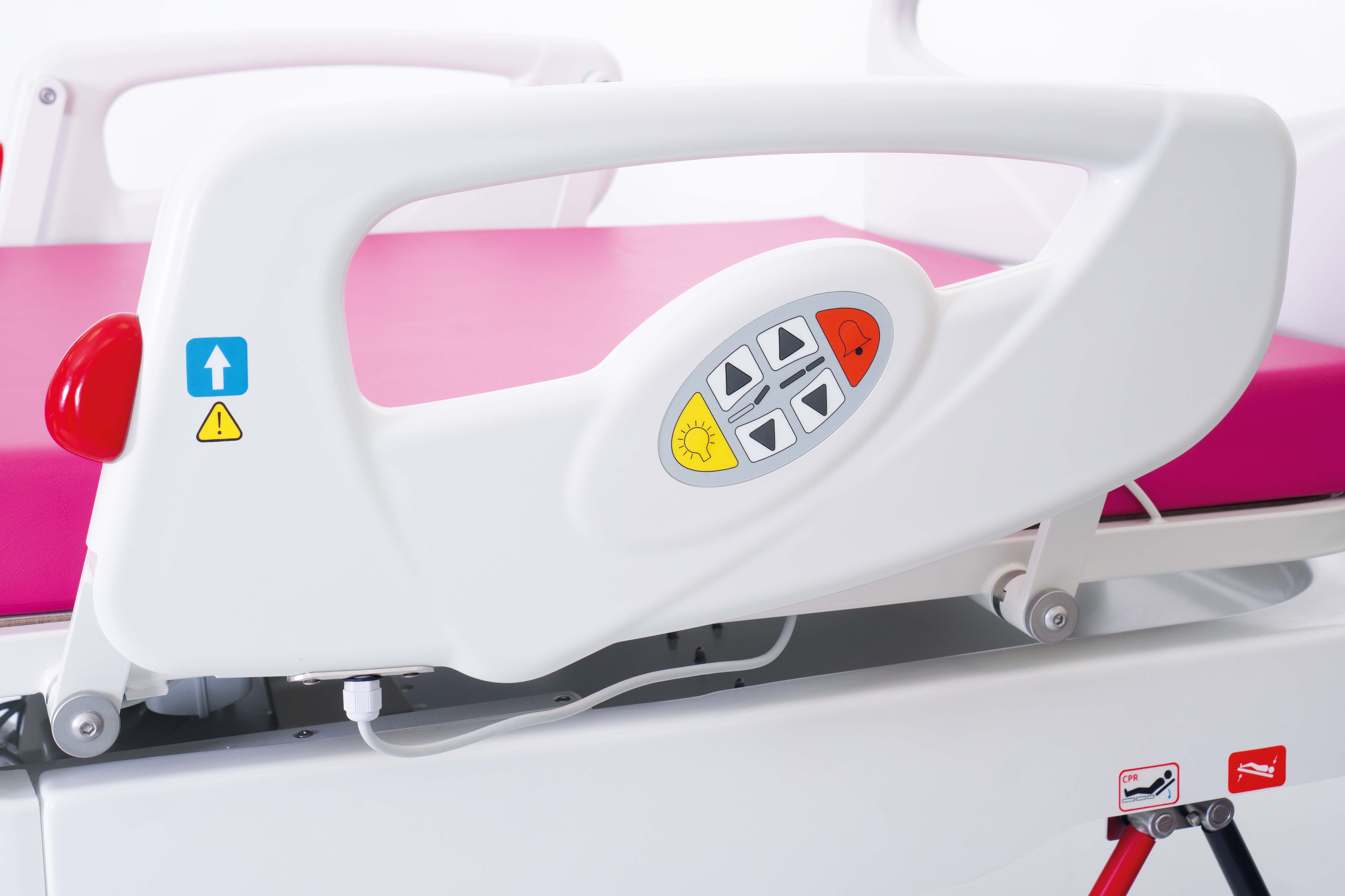 Łóżkiem sterować można z paneli w poręczach bocznych, które umożliwiają regulację wysokości, oparcia pleców, włączanie i wyłączanie podświetlenia oraz aktywację alarmu. Dodatkową funkcjonalność zapewnia pilot, który oprócz regulacji wysokości, kąta nachylenia segmentu pleców i ud posiada również zaprogramowaną pozycję do schodzenia z łóżka oraz pozycję egzaminacyjną i CPR. Łatwe sterowanie zapewnia również sterownik nożny.