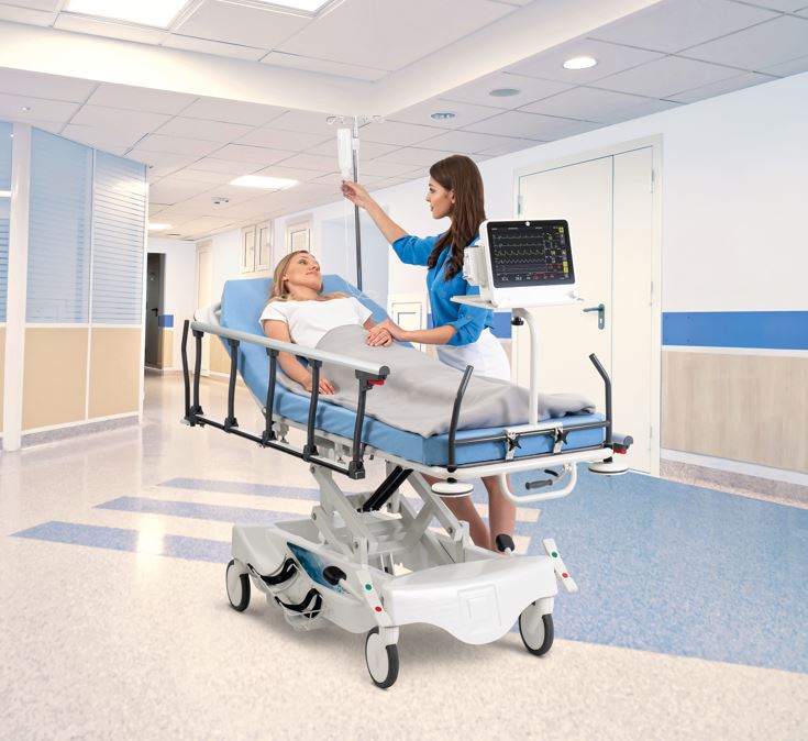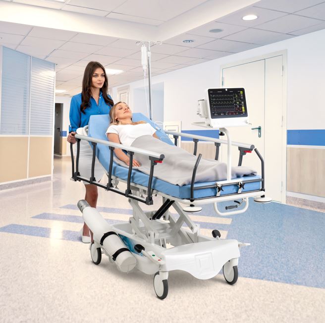 - Zerowa przestrzeń transferowa między łóżkiem a wózkiem podczas przenoszenia pacjenta* - pozwala zminimalizować wysiłek personelu szpitalnego i zmniejsza ryzyko upadku.