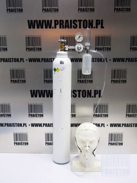 Używany, stan techniczny bardzo dobry, Produkcji polskiej, (2019 r), Parametry butli: Pojemność: 10 litrów, Ciśnienie robocze PW: 200 bar, Ciśnienie próbne PH: 315 bar, Wyposażona w zawór 3/4”, Posiada atest oraz ważną legalizację, Wysokość: 93 cm, Średnica: 14 cm, Reduktor do tlenu Farum A36 z dozownikiem i nawilżaczem, po połączeniu z butlą tlenową, przeznaczony jest do redukcji ciśnienia, ustalania wymaganego przepływu i nawilżania tlenu pobieranego z butli, Ciśnienie w butli wskazuje manometr zamocowany na reduktorze, Regulacja przepływu umożliwia podanie pacjentowi od 0 do 15 l/min nawilżonego tlenu. Jednocześnie istnieje możliwość uzyskania nawilżonej mieszanki tlenowo-powietrznej poprzez obrót pierścienia zasysania powietrza, Reduktor posiada pojemnik wielokrotnego użytku do dezynfekcji, Parametry reduktora: Ciśnienie zasilania: 2-15 MPa, Ciśnienie zredukowane: 0,4+0,1 MPa, Zakres regulacji przepływu: 0-15 l/min, Nawilżanie gazu: ok. 30% RH, Nakrętka z gwintem: ¾”, Wymiary: 310 x 195 x 105 mm, Waga: 1,8 kg, W zestawie do wyboru: Maska tlenowa dla dorosłych z drenem 2,1 m, Maska tlenowa pediatryczna z drenem 2,1 m, Kaniula nosowa dla dorosłych z drenem 2,1 m, Posiada wystawiony aktualny Paszport Techniczny, Gwarancja: 6 miesięcy na rynek krajowy - Polska, 1 miesiąc na rynek międzynarodowy, Możliwość finansowania (tylko Polska): Raty, Leasing, Pożyczka,