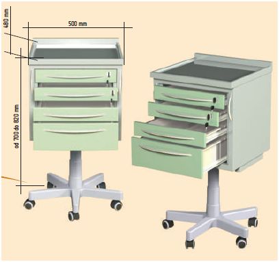 Meble naszej firmy nawiązują do najnowszych tendencji w światowym wzornictwie; są estetyczne, funkcjonalne i trwałe. Zunifikowana konstrukcja i wspólna linia stylistyczna pozwala dowolnie konfigurować zestawy mebli stosownie do indywidualnych potrzeb i możliwości przestrzennych pomieszczeń (gabinetów). Meble medyczne wszystkich serii dostępne są w 6 podstawowych kolorach wg RAL oraz dodatkowo na zamówienie w około 200 kolorach wg palety RAL