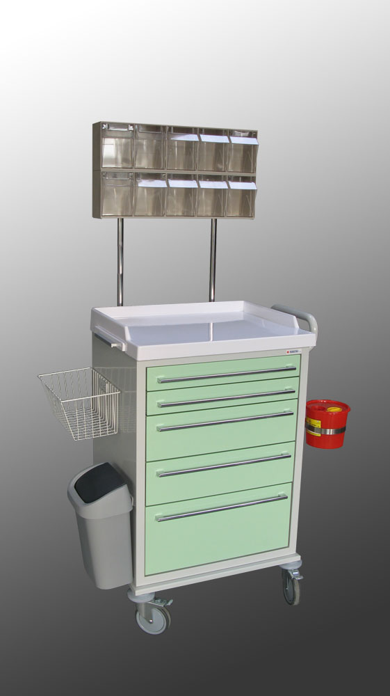 Wielofunkcyjne wózki medyczne W83 w zależności od zastosowanego wyposażenia mogą pełnić rolę wózka anestezjologicznego, reanimacyjnego, zabiegowego, opatrunkowego.