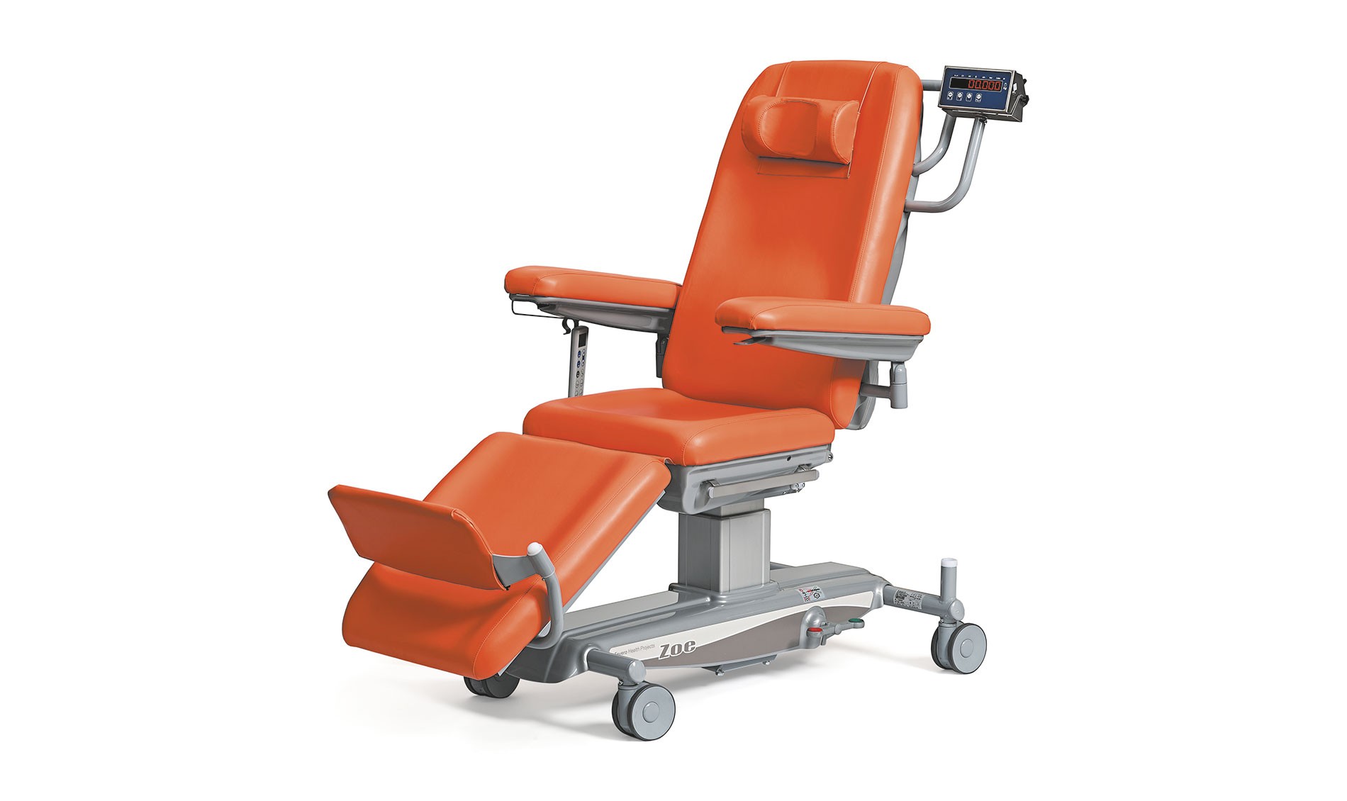 Fotel do dializ ZOE PRECISION jest wyposażony w zintegrowany, precyzyjny system pomiaru masy ciała pacjenta.