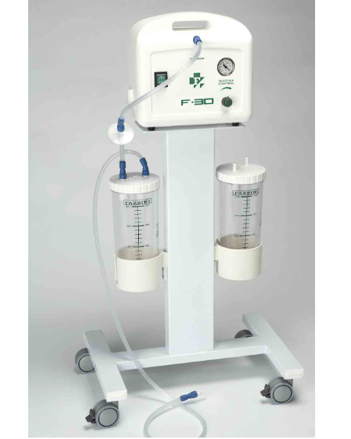Łatwy do transportu, kompaktowy profesjonalny ssak elektryczny. Mocna pompa tłokowa umożliwia bezproblemowe odsysanie śluzu, krwi oraz innych, nawet gęstych płynów, u osób dorosłych i dzieci. Bezstopniowa regulacja siły odsysania i manometr ułatwiają kontrolę pracy. Podstawa na 4 kółkach-na dwóch z nich hamulce, koszyk na akcesoria. Opcjonalnie ssak może być wyposażony w wyłącznik nożny. Możliwość stosowania wkładów jednorazowych.