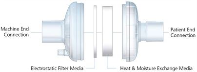 - Filtry oddechowe HME zaopatrzone są dodatkowo w warstwę hydrofobową nawilżającą, która zatrzymując wodę z wydechu pacjenta przeciwdziała niebezpieczeństwu uszkodzenia nabłonka. Jest to szczególnie ważne u pacjentów zaintubowanych na dłuższy czas