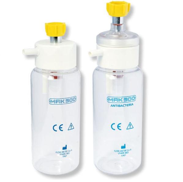 MAK/500 - pojemnik bezpieczeństwa poj. 500 ml z zaworem zwrotnym odcinającym ssanie w momencie przepełnienia. Dostępny w wersji z filtrem antybakteryjnym (MAK/500 antibacteria) do regulatora próżni EASYVAC i inżektora EASYAIR.