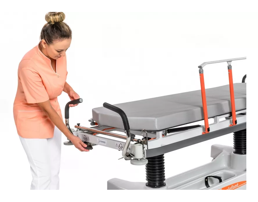 • wysokość lub przechyły wzdłużne można uzyskać dźwigniami nożnymi, które są dostępne z obu stron wózka