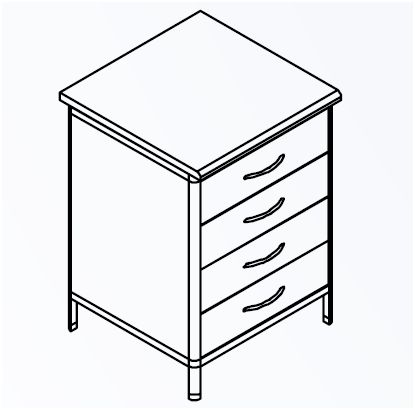 Szafka z szufladami z czterema.szufladamiSzafka z systemu ALUFORM. Konstrukcja mebli: profile aluminiowe i złączki tworzące trwałą i estetyczną konstrukcję mebli; profile aluminiowe anodowane o przekroju 25x25mm, w kolorze srebrnym; złączki wykonane z tworzywa ABS wzmocnione wewnątrz zatopionym elementem metalowym o dużej odporności mechanicznej; wypełnienie z płyty melaminowej; fronty szuflad i drzwi wykonane z płyty melaminowej, krawędzie zabezpieczone obrzeżem PVC w kolorze identycznym z kolorem korpusu o grubości 2 mm; półki w szafach zamkniętych pełnym frontem wykonane z płyty melaminowej, wszystkie krawędzie zabezpieczone obrzeżem PVC; półki w szafach o bokach i frontach oszklonych wykonane ze szkła, wszystkie krawędzie szlifowane; fronty szklane wykonane ze szkła bezpiecznego przeźroczystego o grubości 5 mm; blaty robocze wykonane z płyty wiórowej laminowanej laminatem wysokociśnieniowym odpornym na środki dezynfekujące, grubość blatu 28 mm, krawędzie zabezpieczone obrzeżem PVC; dla pomieszczeń socjalnych odporność termiczna blatów roboczych na temperaturę 200o C; szafki stacjonarne posiadają nóżki o wysokości 120 mm z regulacją wysokości; kolorystyka wg. wytycznych klienta.