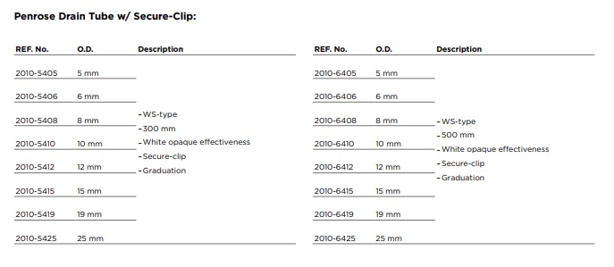 - kontrastujące w RTG, co pozwala na kontrolę położenia drenów pod promieniami X.