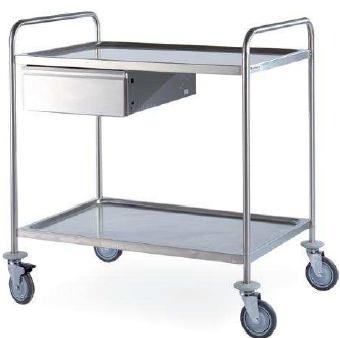Materiał: stal nierdzewna. Koła 4 x 125 mm (2 z hamulcami). 1 szuflada 155 mm wysokości.