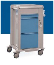 Wózek z serii Shango. Wózek 9 modułowy. Łączy cechy wózka medycznego z codziennym używaniem laptopa do wprowadzania danych pacjentów, sprawdzania recept, przeglądania zdjęć rentegowskich. Dodatkowa półka na laptop wyposażona jest w przestrzeń na kable i zasilacz oraz oddzielny zamek na klucz. Konstrukcja ze stali malowanej proszkowo z właściwościami antybakteryjnymi.Szuflady ze stali malowanej proszkowo w 3 kolorach: żółty, niebieski, zielony. Blat z trzema podniesionymi brzegami. Wbudowany uchwyt do prowadzenia. Szuflady w 4 wysokościach z zamkiem centralnym: 75 mm (1modułowa), 155 mm (2 modułowa), 235 mm( 3 modułowa), 315 mm (4 modułowa). Trzy przezierne uchylne półki boczne. Możliwość zamontowania wielu akcesoriów: nadstawka, szyny z regulowana wysokością, kosze na odpady, wysięgnik na kroplówkę, pojemnik na igły, półki ze stali nierdzewnej, plastikowe tace z podniesionymi brzegami, uchwyt na pudełko na rękawiczki jednorazowe, ochwyt na nerkę, pojemnik do dezynfekcji, półka na laptop, uchyt na cewniki. Waga: 62 kg. Koła 4x125 mm, 2 z hamulcem.