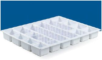 Plastikowe organizery z wydzielonymi miejscami do szuflad o wysokośći 155, 235 mm.