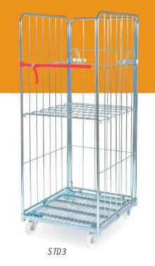 Kontener transportowy uniwersalny. Stal epoksydowana. Udziw 500 kg. Koła 4 x 125 mm.