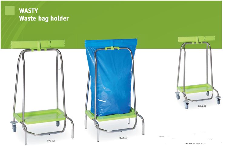 Zbieracz bez obręczy na worek. Zamiast obręczy klips zamykający worki na odpady. Pojemnośc 40 l. Udźwig 5,3 kg. Kółka: 2 x 80 mm.