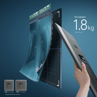 Najlżejszy FPD o masie 1,8 kg* z detektorem TFT FUJIFILM na bazie elastycznego filmu.