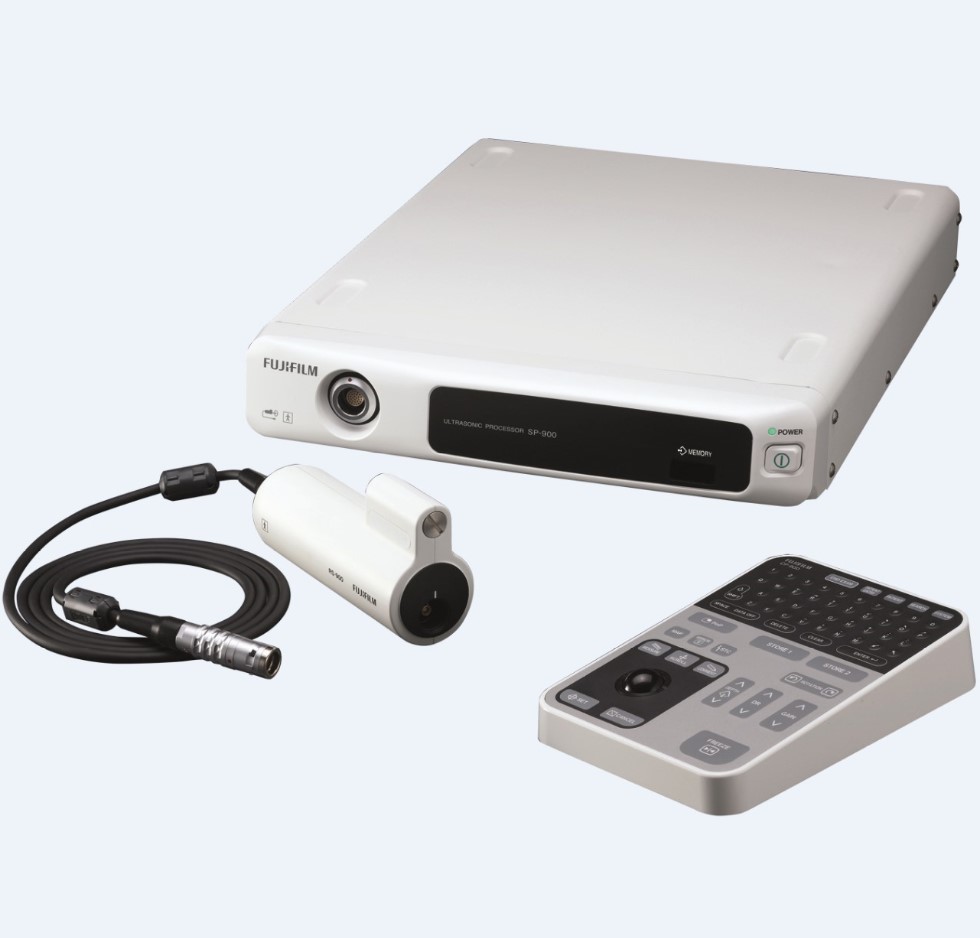 Procesor ultrasonograficzny ze skanerem numer katalogowy SP-900 Procesor ultrasonograficzny ze skanerem do sond mini prób ; skanowanie radialne w prezentacji B mode. Mały i lekki system może być używany jako samodzielne rozwiązanie, jak również część większego systemu endoskopowego.