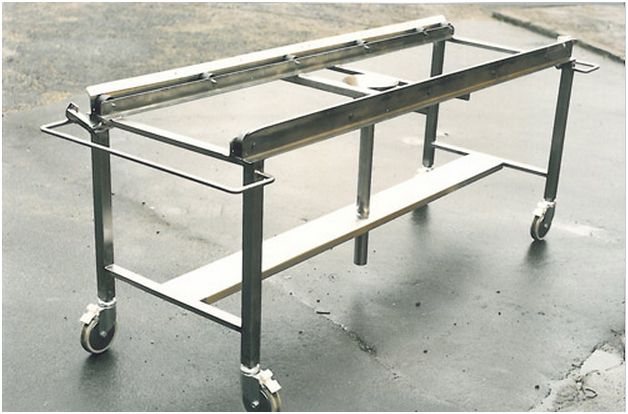Stół do toalety pośmiertnej wykonany ze stali nierdzewnej.